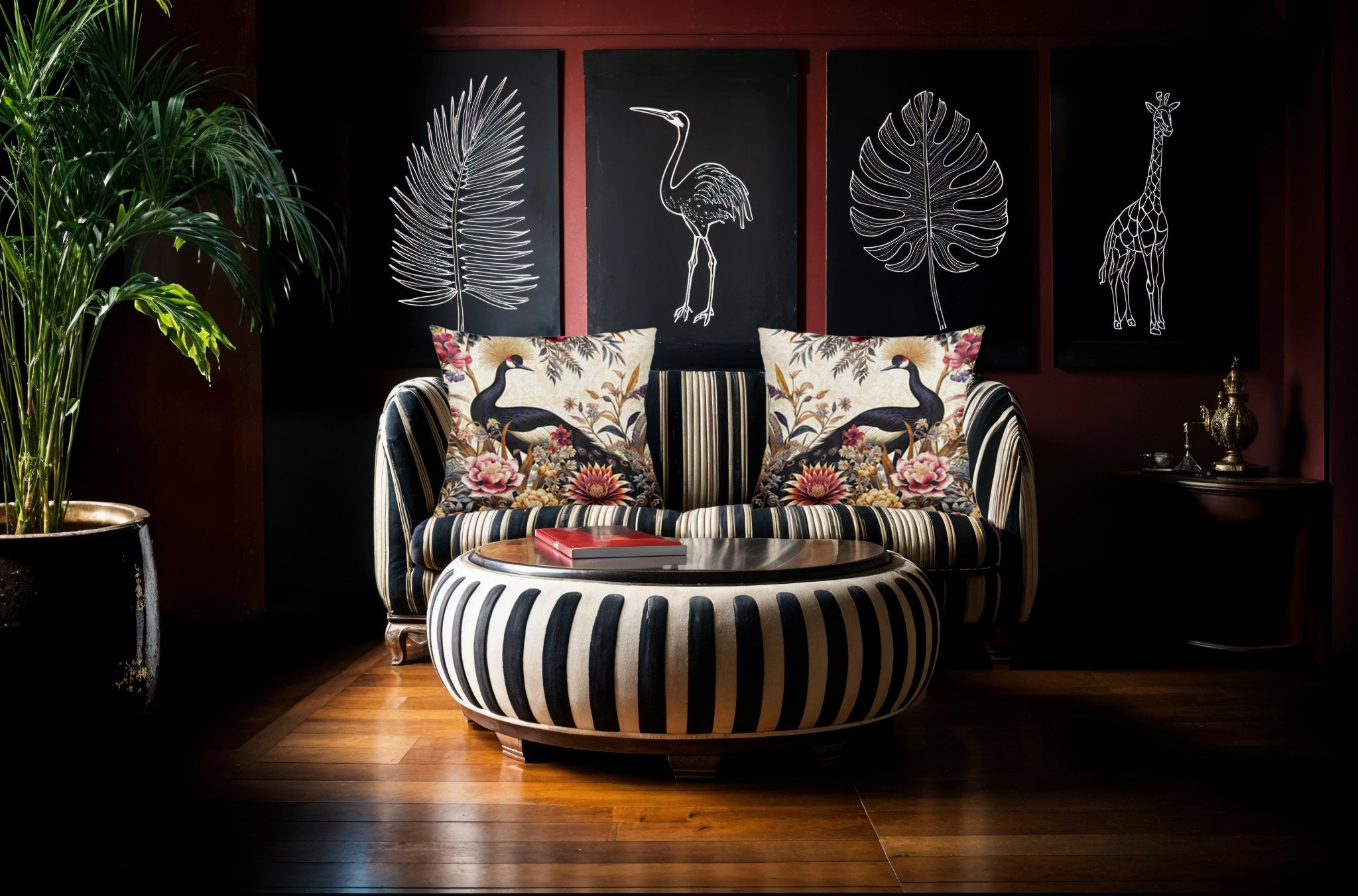 BESTIAIRE Cushion Cover - Fantastic Canopy Duo Peacock Crane - 45cm
