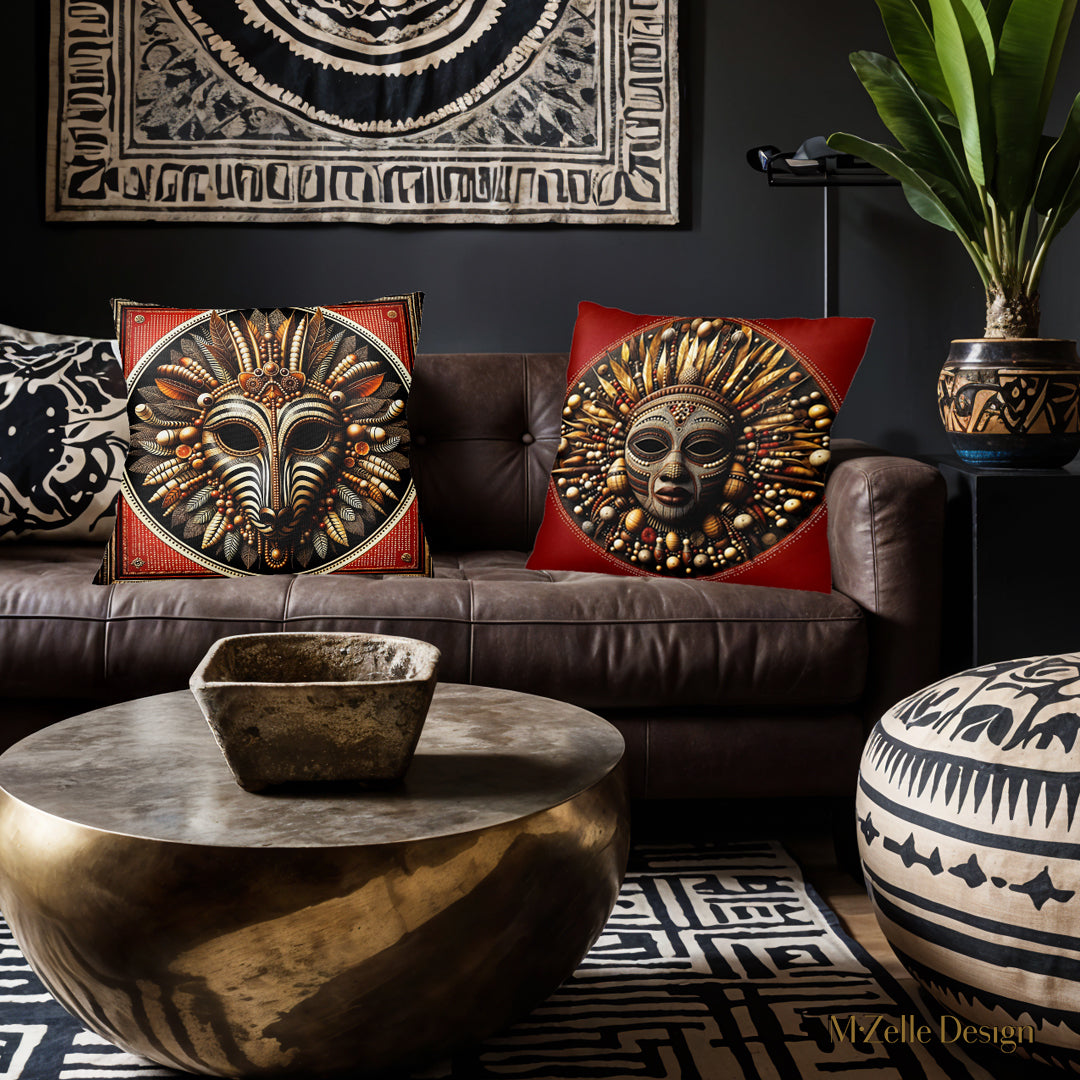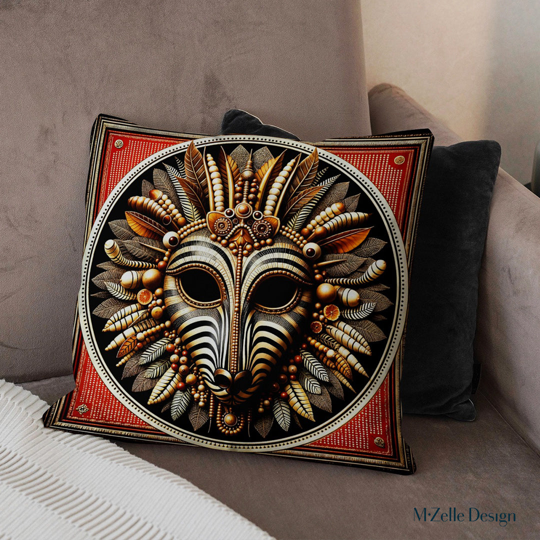 AFRICA Cushion Cover - Zebra Warrior Mask Duo - 45 and 55cm
