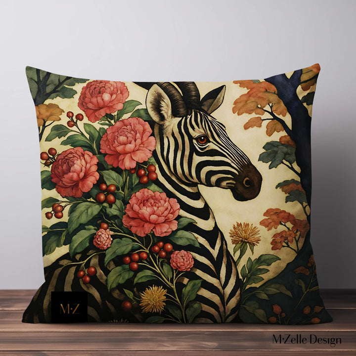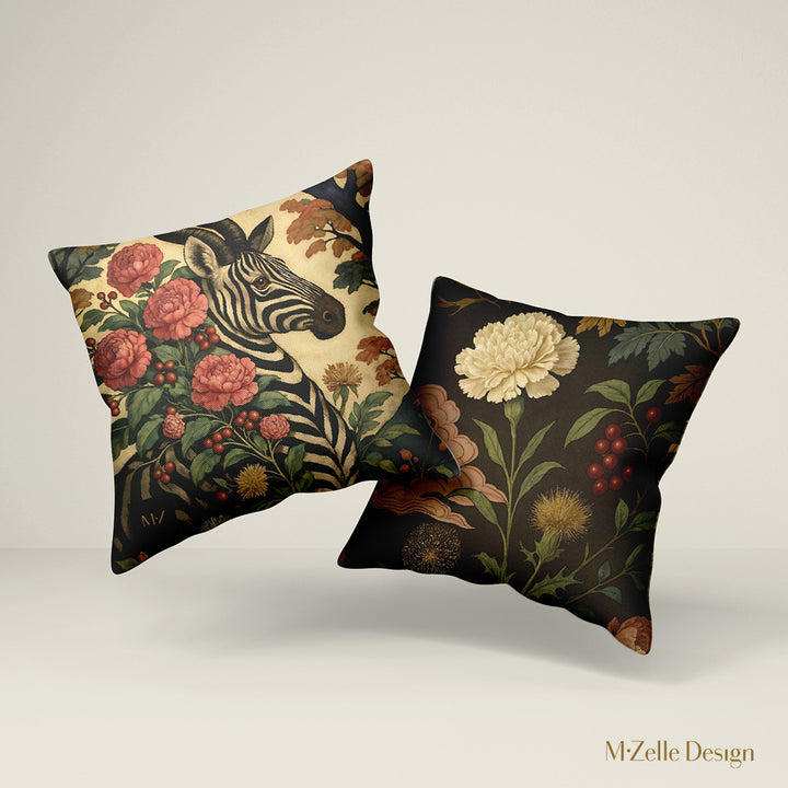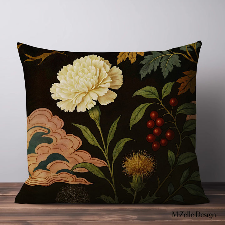 Housse décorative satinée 45cm - La collection Bestiaire Singulier s’enrichit d'artefacts soigneusement travaillés dans un style d’illustration naturaliste, entre peinture su bois, encre et gravure, où des animaux mystico-lyriques veillent au milieu d'une flore automnale.